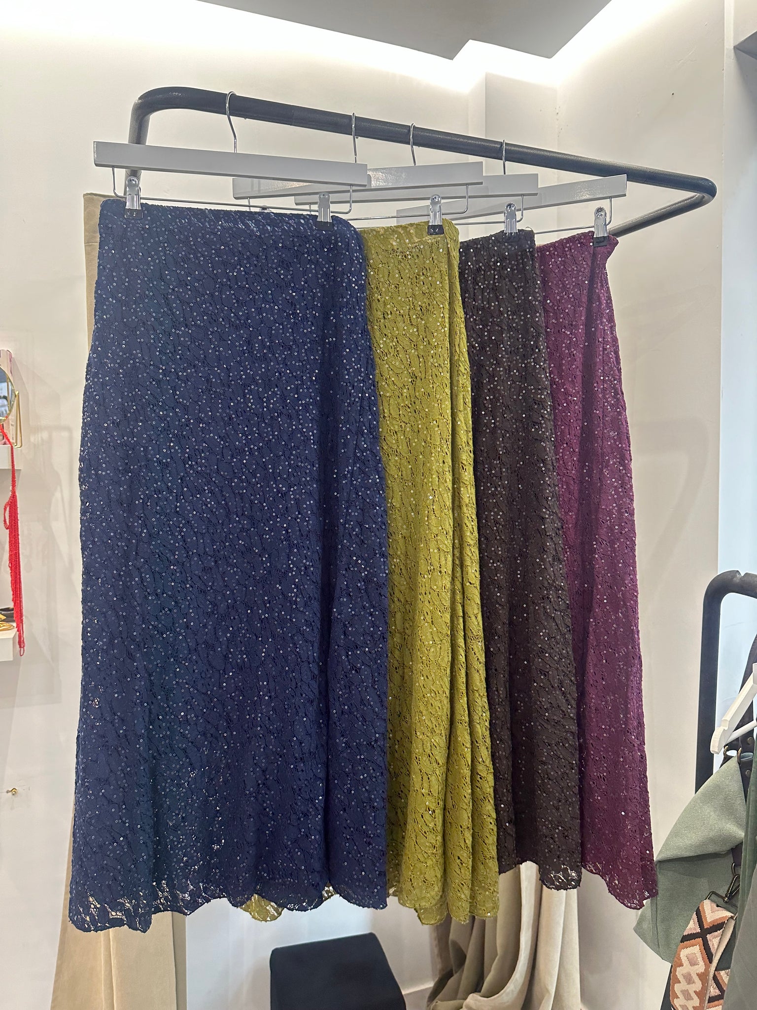 Destaca en cada ocasión con nuestra falda midi de encaje con lentejuelas, una prenda femenina, sofisticada y versátil.