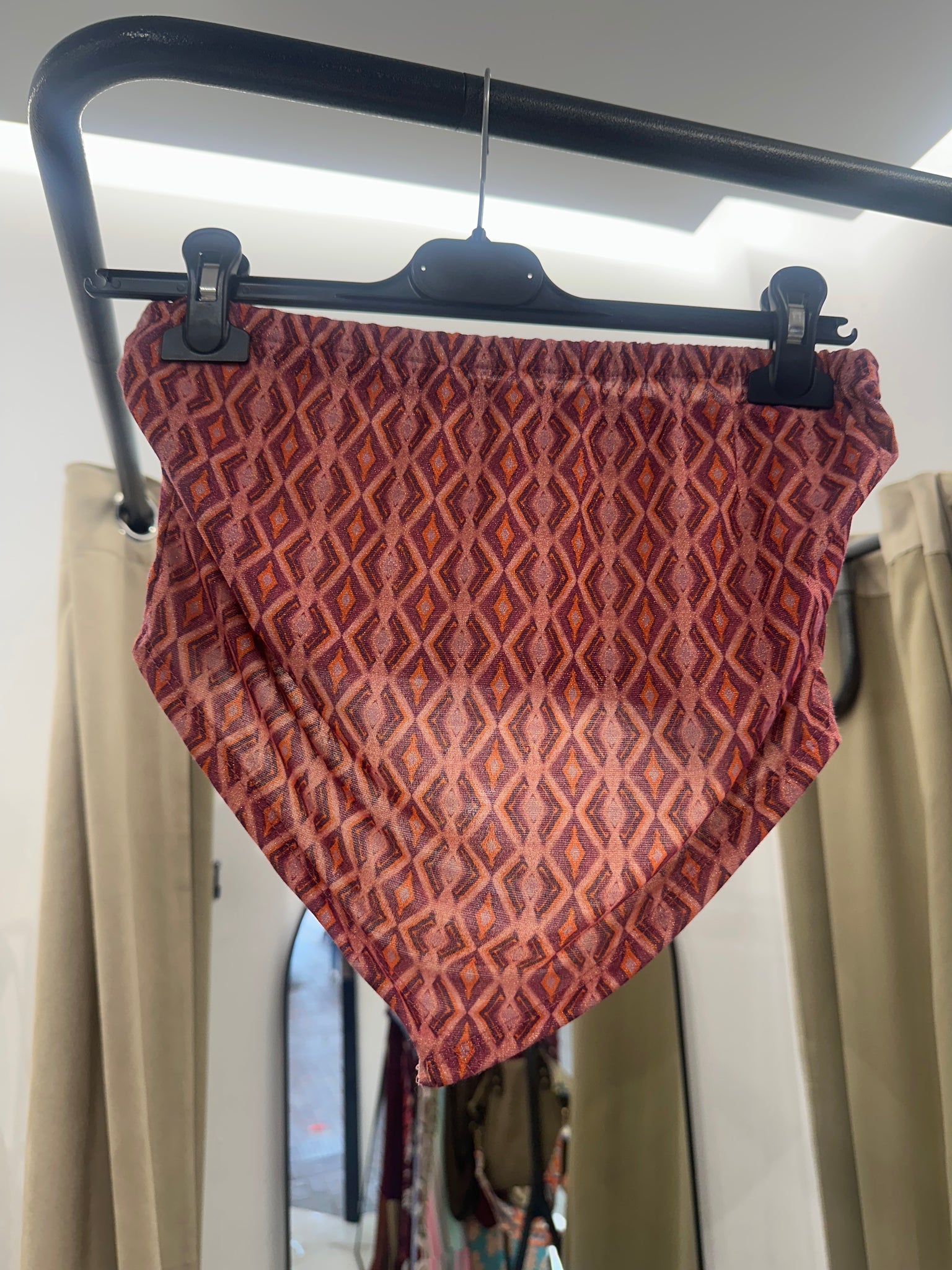 Top Pañuelo Elástico Estampado Geométrico Granate
